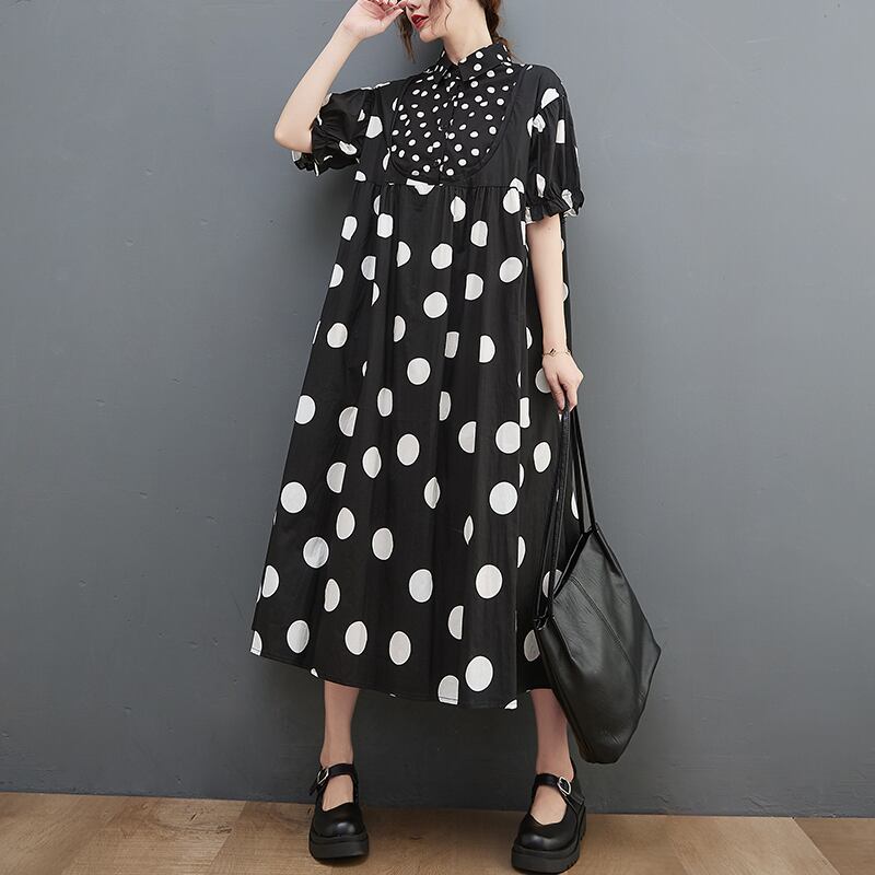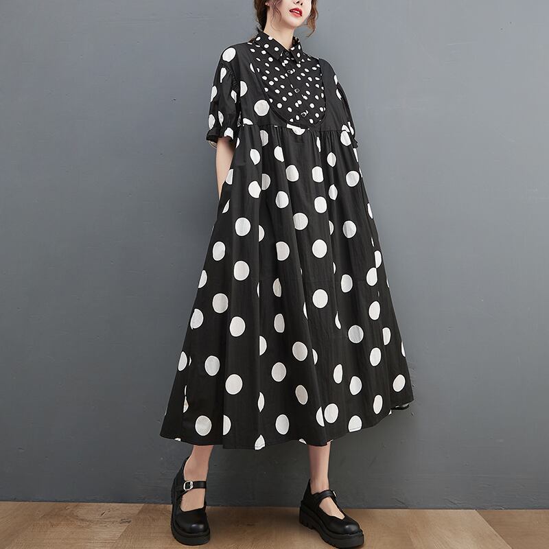 初回送料無料ロングドレススリムシャツ水玉レディースファションワンピース