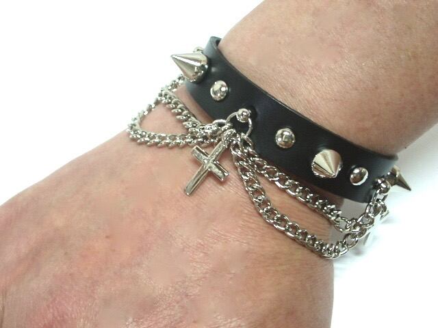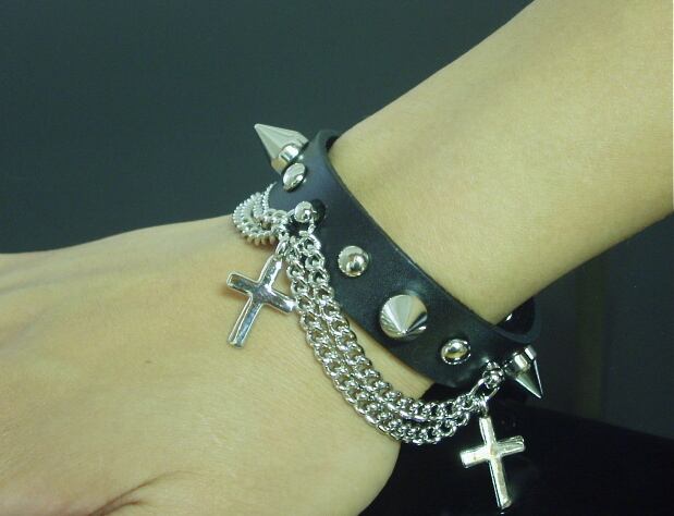 本革スタッズブレス・クロス&チェーン・スパイクスタッズ