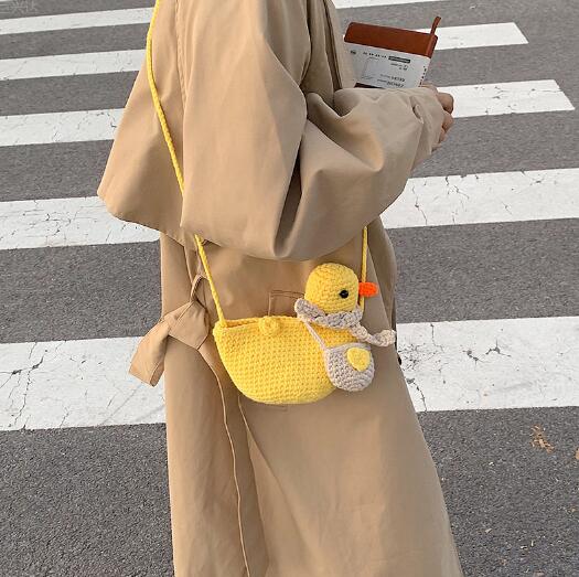 【YAYA】手作りバッグ・レディース・ ショルダーバッグ・草編みバッグ・可愛い・ダック・子供バッグ