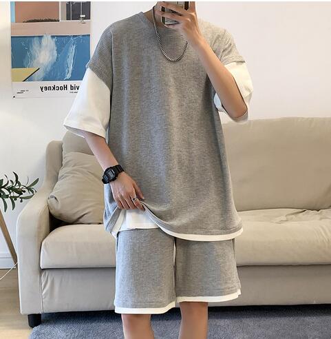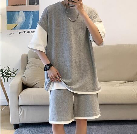 メンズ・カジュアル・フェイクTシャツ+パンツ・セット・ゆとり・気質・・M-3XL
