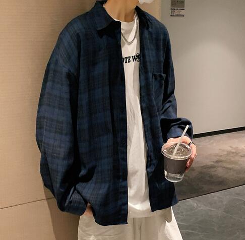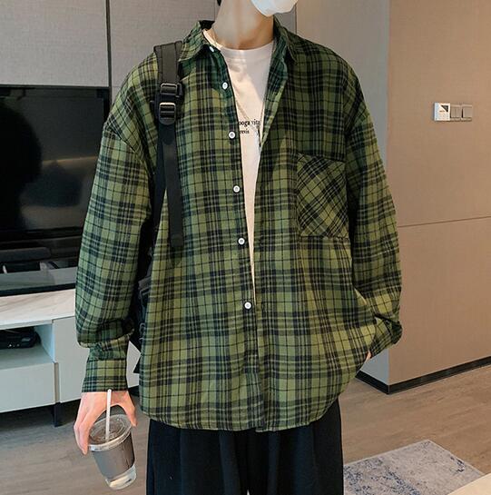 メンズ・Tシャツ・日系ブラウス・春秋新作 ・ゆとり・気質・復古格子長袖カーディガン・M-2XL