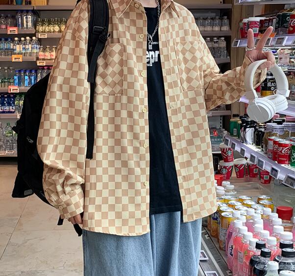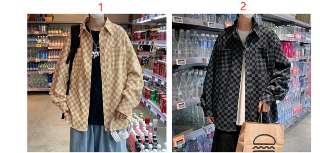 メンズ・Tシャツ・日系ブラウス・春秋新作 ・ゆとり・気質・復古チェッカー 長袖カーディガン・S-3XL