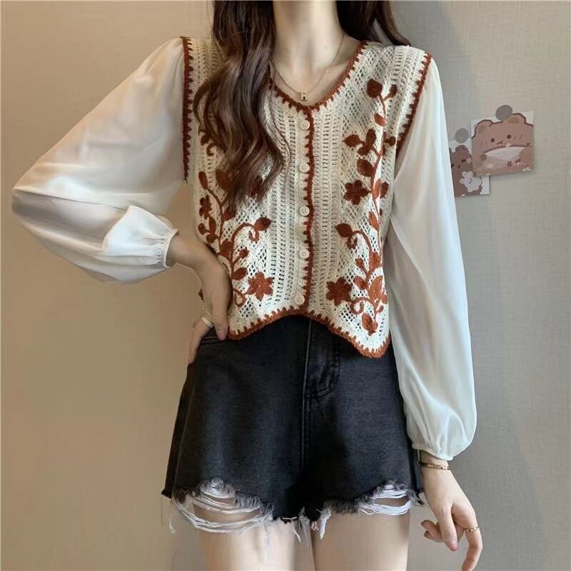 レデイース・シフォン長袖・ニット・気質・トップス・3色・秋の薄物