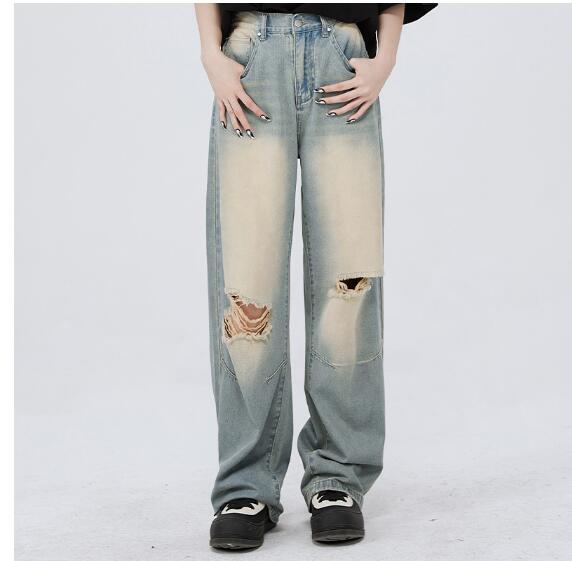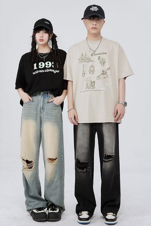 ズボン★メンズ★ジーンズ★ファッション★★ゆとりパンツ★ストレート★ダメージデニムパンツ