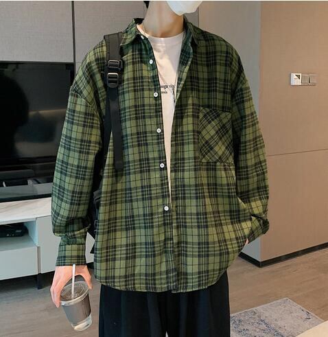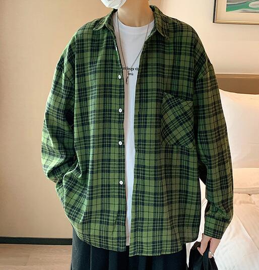 メンズ・Tシャツ・日系ブラウス・春秋新作 ・ゆとり・気質・復古格子長袖カーディガン・M-2XL