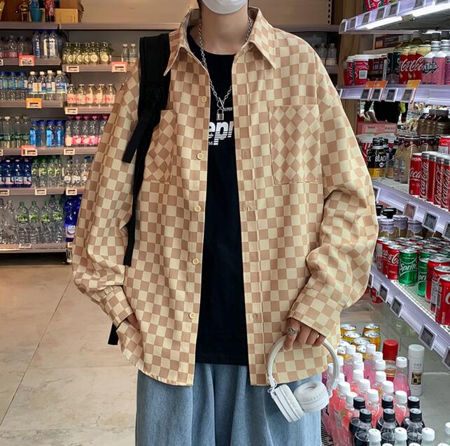 メンズ・Tシャツ・日系ブラウス・春秋新作 ・ゆとり・気質・復古チェッカー 長袖カーディガン・S-3XL