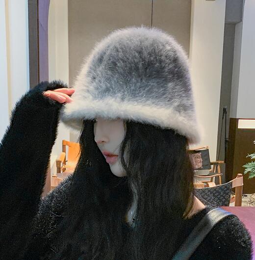 レディース帽・モヘア日除け帽・日焼け止め・保温・戸外・人気 ・グラデーション