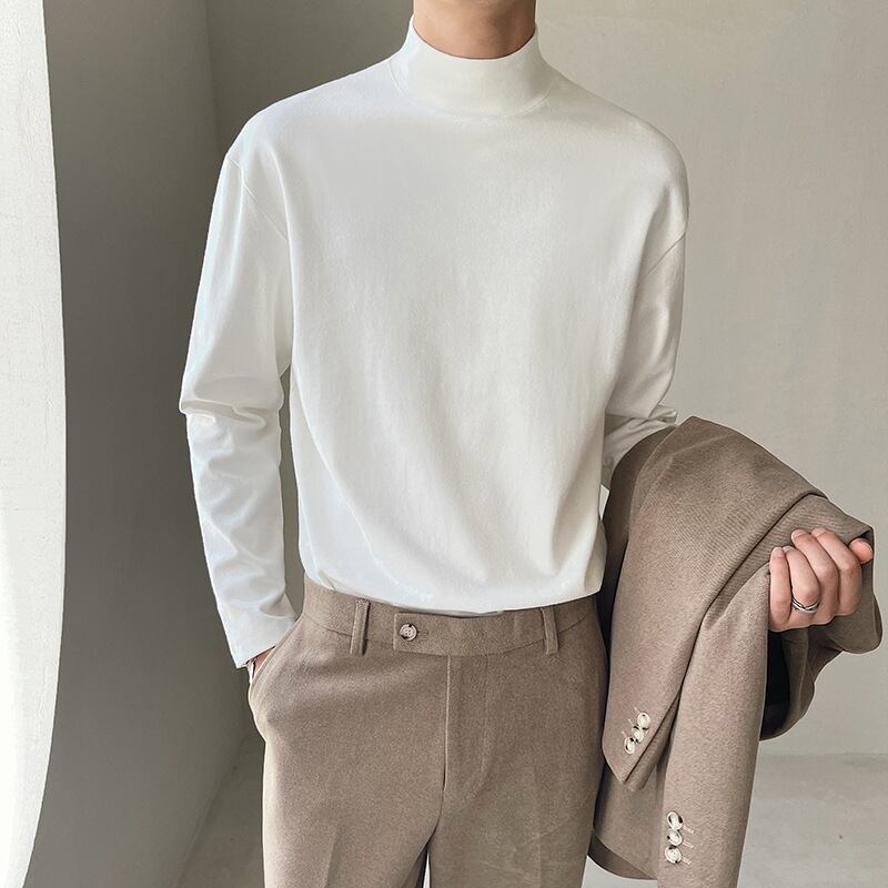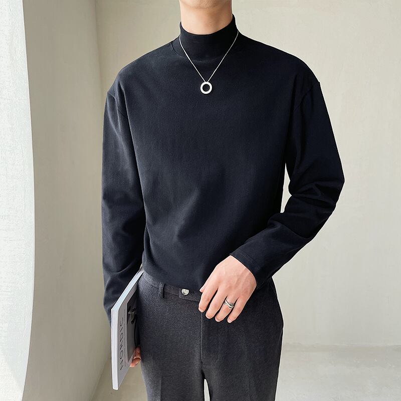 メンズ・カジュアル・ハーフネック・tシャツ・インナージャケット・2色・M-2XL