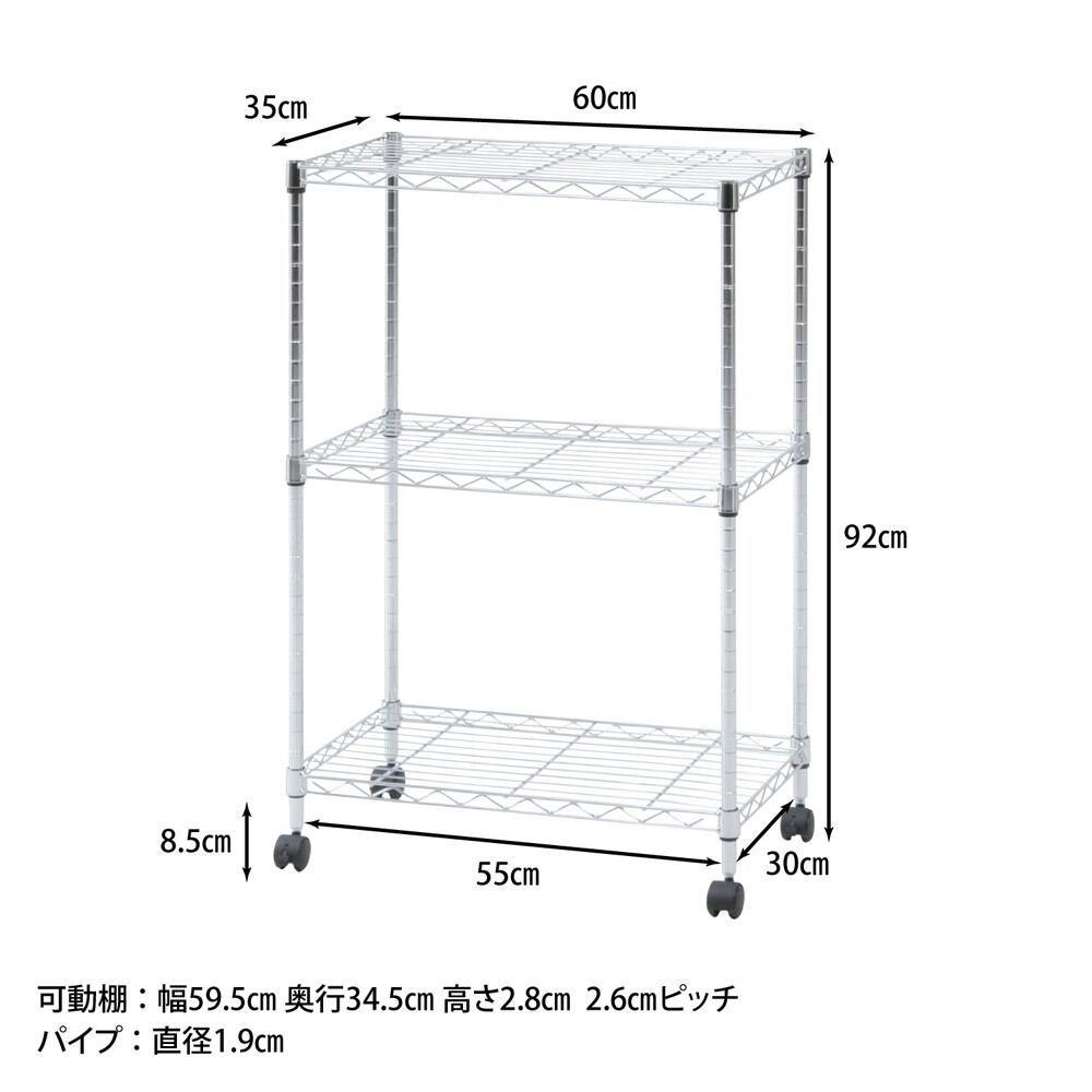 メタルマルチシェルフ3段60 クロム MS-63593CR