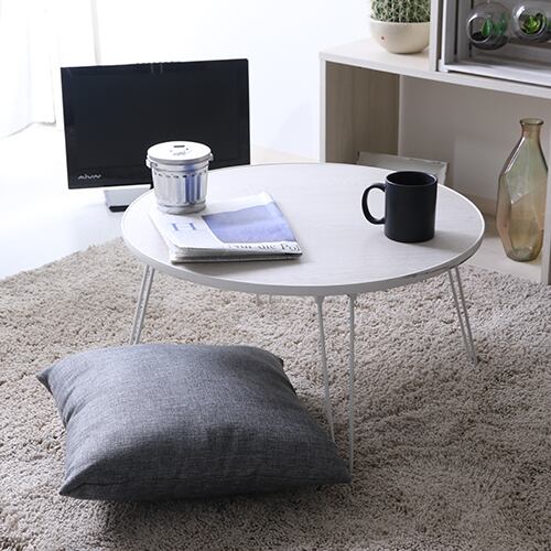 ワンルームにもピッタリなコンパクトサイズのテーブルです。折りたたむことができるので、使わないときにはスペースをとらずに収納することができます。天板は丸型で角がとがっていないため、小さなお子様がいるご家庭でも安心して使用できます。