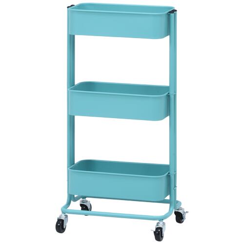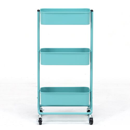 キッチンワゴン バスケット3段 スリム ターコイズブルー