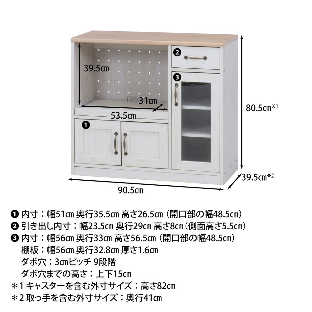 キッチンカウンター 90幅 NA×WH