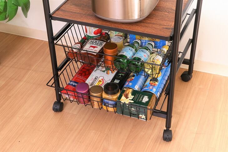 シンプルで使いやすいレンジワゴンです。炊飯器やトースターもすっきり収納。棚やバスケットは引き出せるので出し入れしやすいデザイン。キャスター付で移動も簡単!お部屋の雰囲気に合わせて選べる2色展開です。