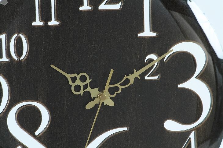 レトロな文字盤と見やすいポップな数字がスタイリッシュな時計です。文字盤の数字の部分をくりぬいた遊び心のあるデザイン■必要電池:単3電池1個(別売)■台湾製ムーブメント(ステップ)