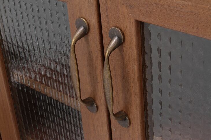 落ち着いたブラウン色のキッチンカウンターです。棚はポットや炊飯器も置きやすいスライドレール式です。棚板は可動式で、収納物に合わせて調節できます。取っ手はおしゃれなアンティーク調のデザインです。移動に便利な隠れキャスター付きです。●組み立て商品■収納家具