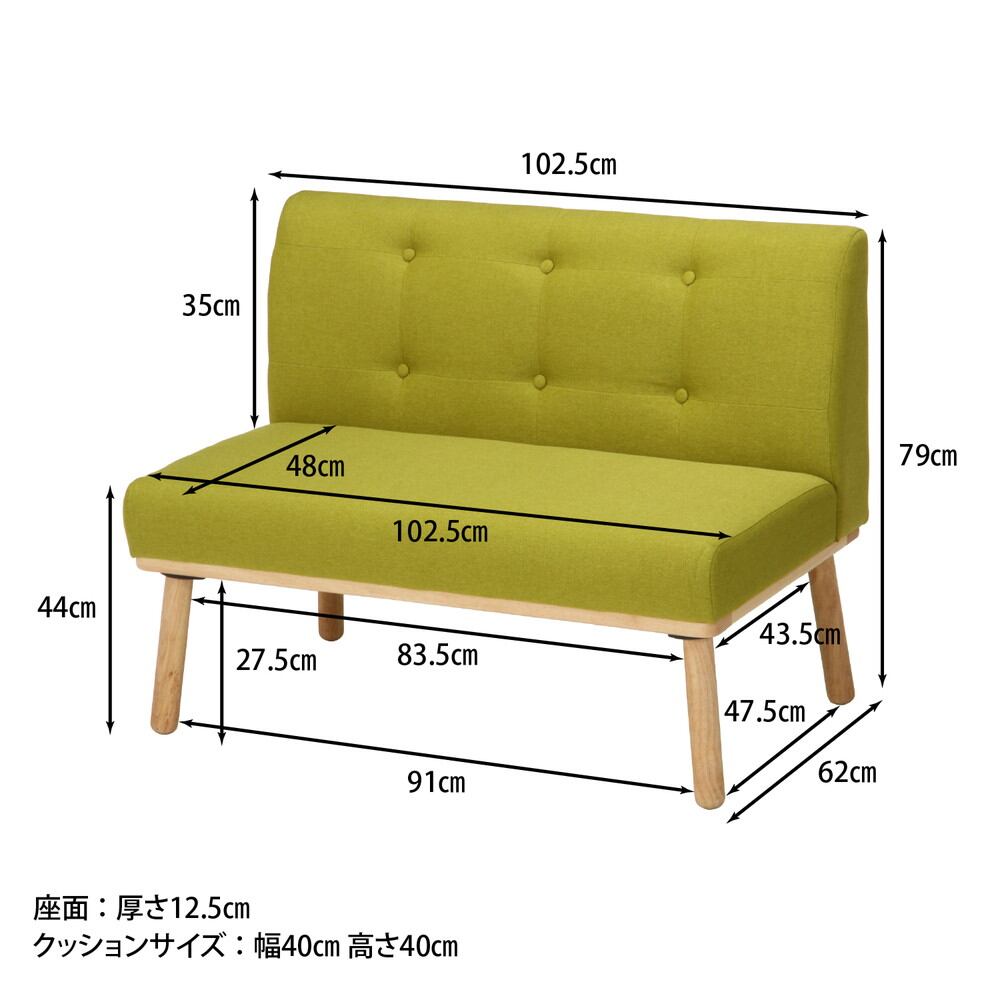 天然木ならではのナチュラルマークのある商品です。色目の濃淡や湾曲など、天然木の素材を生かした商品で1点1点表情が異なりますが、商品の不良ではございません。ファブリック素材と天然木がマッチしたオシャレな2人掛けソファです。爽やかなグリーン/ブルーがお部屋を明るく見せてくれます。あたたかみのある天然木でお部屋を優しい雰囲気に演出します。■組み立て商品■ソファ