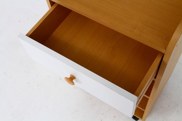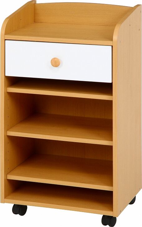 リビングがすっきり片付くキャスター付きラックです。サイドにはバッグなどを掛けて収納できるフック付きです。ナチュラルテイストのデザインでどんなお部屋にも馴染みます。棚板は可動式で、収納物に合わせて調節できます。移動に便利なキャスター付きです。■組み立て商品■収納家具