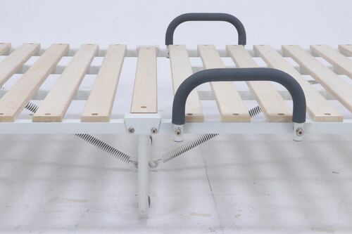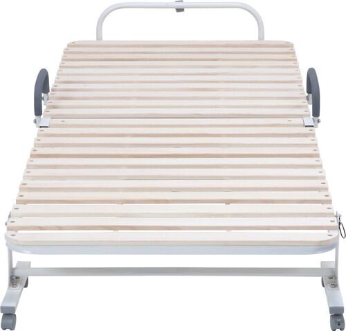 通気性の良いスノコベッドです。使用しない時には折りたたんでコンパクトに収納可能です。キャスター付きで移動もラクに行えます。サイドには持ち手付きで起き上がりをサポートしてくれます。