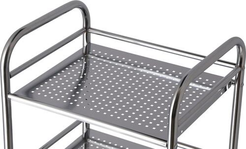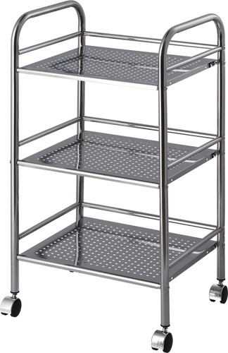 必要なものを1台に。キャスター付きで移動もラクにできるので必要なものやよく使うものをまとめていつでもサッと準備ができます。それぞれの棚にパンチング加工を施し、圧迫感を感じさせにくいデザインとなっております。