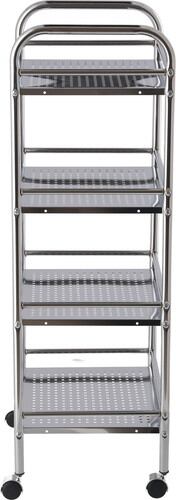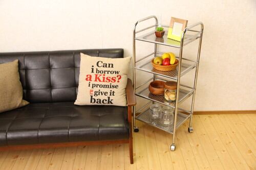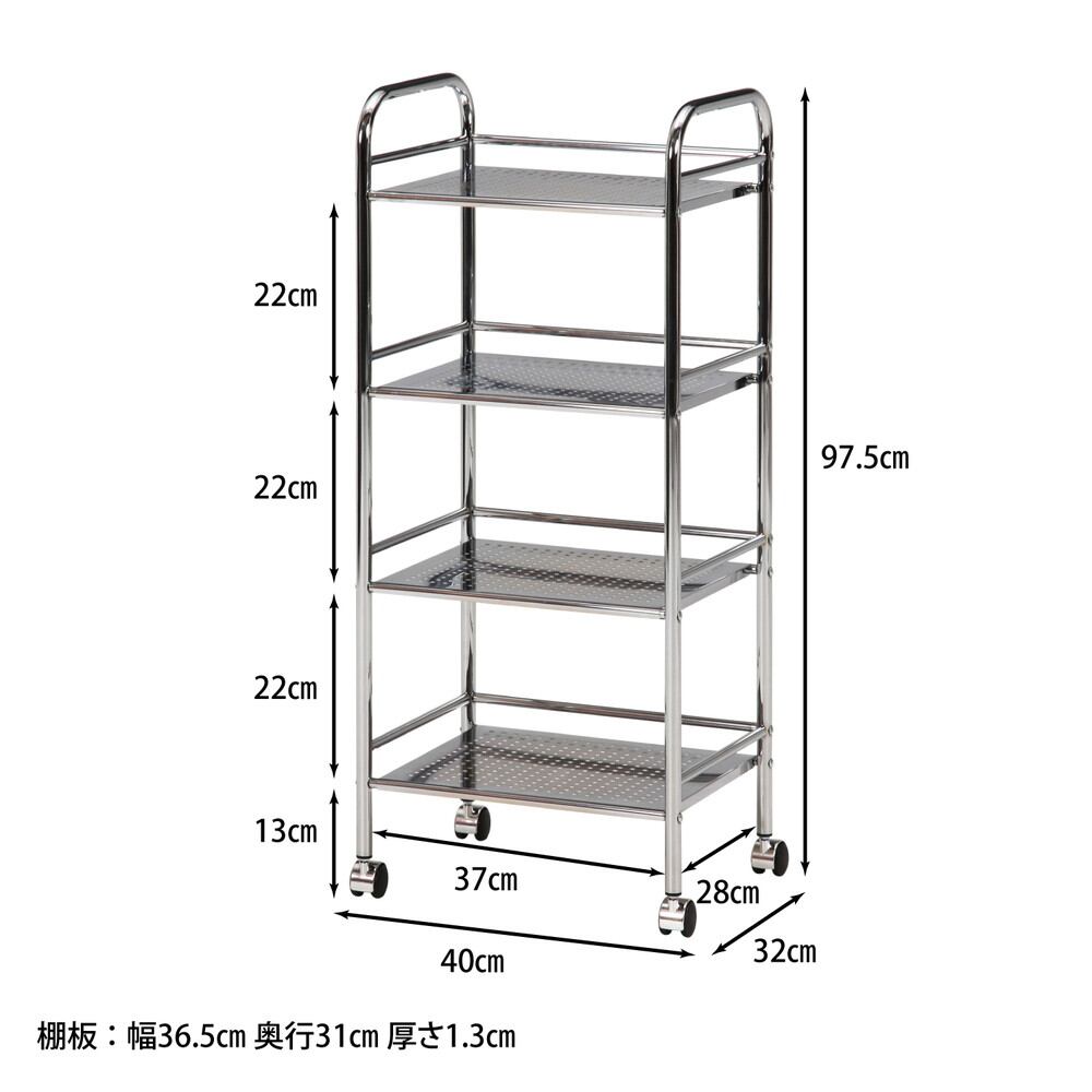 必要なものを1台に。キャスター付きで移動もラクにできるので必要なものやよく使うものをまとめていつでもサッと準備ができます。それぞれの棚にパンチング加工を施し、圧迫感を感じさせにくいデザインとなっております。