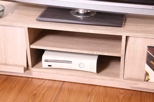 左右はフラップ扉になっており雑誌などをディスプレイすることができます。中央の収納部分は背面にコード穴が空いており、AV機器の設置にピッタリです。隠しキャスター付きで移動もラクにできます。
