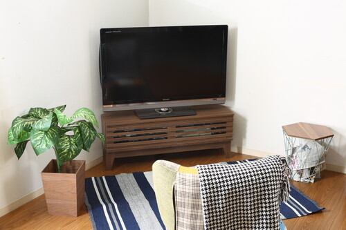 お部屋の角のデッドスペースにも設置することができ、空間を有効活用できます。木目調のぬくもり感じる優しいデザインです。背面は背板を無くし、通気性の良い造りとなっておりますので機械類の設置も安心です。