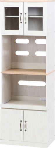 キッチン周りのものをスッキリと収納してくれます。コンセント2口付きです。背面にはコード穴が空いているのでコードを後ろに流すことができます。