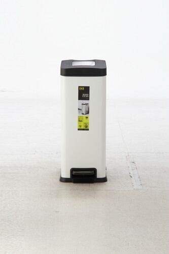 ステンレス製のシンプルなダストボックスです。蓋つきなので中身が見えず、においが気になるキッチン用のゴミ箱にも使用できます。ソフトクローズ機能で蓋がゆっくりと閉まるので指を挟む心配もありません。足元のペダルで蓋の開け閉めができます。インナーバケツ付きで、ゴミ袋の交換もラクに行えます。