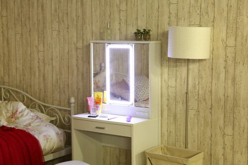 三面鏡ドレッサー WH LEDライト付き