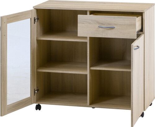 収納力の豊富なワゴンタイプの収納キャビネットです。引き出しはふきんや食器はもちろん、調味料を立てて収納できるよう深めになっています。キャスター付きなので、簡単に移動させることができます。ホワイトウォッシュのカラーなので、お部屋のインテリアにも合い、キッチン収納としてだけではなく、リビングや書斎にも置けるデザインです。