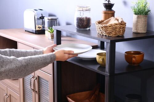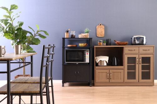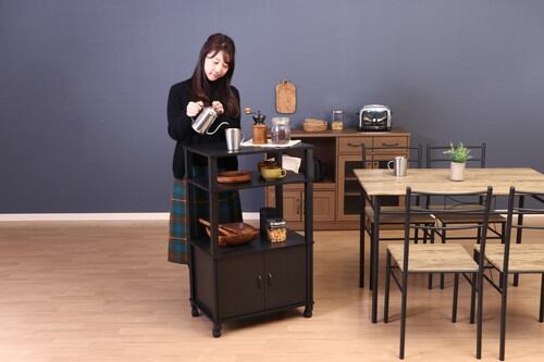扉収納付きのマルチワゴンです。上部はオープンラックとなっており、小物などを置いて見せる収納として楽しむことができます。キャスター付きなので、簡単に移動させることができます。