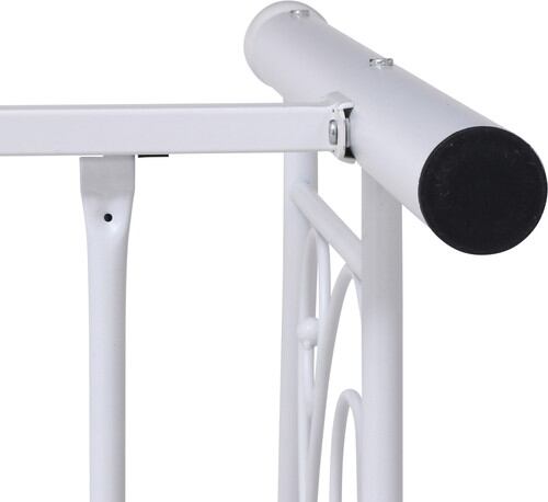 シングルサイズのパイプベッドです。ヘッドとフット部分にはおしゃれな模様があしらわれたデザインです。ベッド下には十分な空間がある為、収納スペースとしても活用できます。