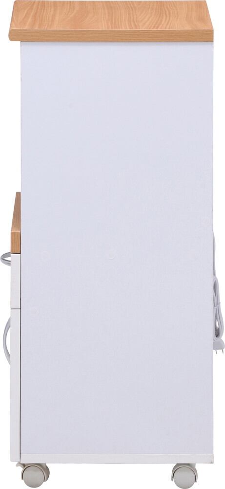 ホワイト×ナチュラルカラーで、どんなインテリアにも馴染みやすいキッチンカウンターです。戸棚には食器や缶詰、お菓子などスッキリ収納できます。お好みの高さに合わせて、棚の付け替えができます。引き出して使えるスライド棚です。炊飯時やお湯を沸かす際に出して使うことで、蒸気による棚の劣化を防ぐことができます。引き出しにはお箸やランチマットなど、かさばる小物をすっきり収納できます。スライド棚の奥には2口のコンセントがついているので、使い勝手もバツグンです。