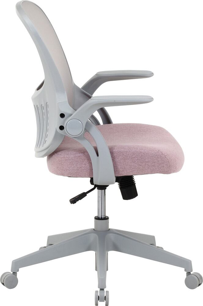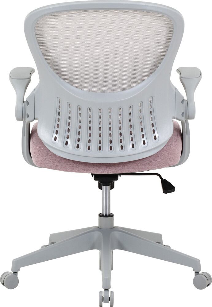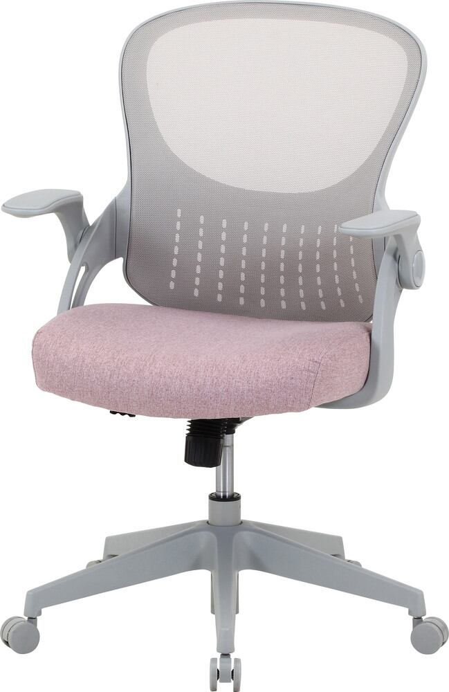ポリエステル生地にウレタンフォームを使用した座面は、沈み込み過ぎず快適な座り心地です。レバーを引くとロッキングの切り替えが可能です。またロッキングの固さはつまみで調整できるので、自分好みでリラックスできます。肘掛けは上げ下げできるので、使わないときはアームを上げてデスク下にすっきり収納できます。ガス圧昇降式で、無段階で高さ調整が可能。座面の高さは41~48.5cmとお子様や女性でも使いやすい。