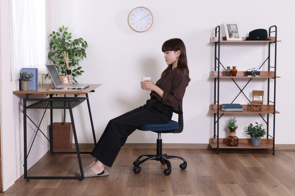 使用するネジは座面と背もたれを固定する2本のみ。後は各パーツを差し込むだけの簡単組み立て!メッシュ素材を採用しており、長時間座っていても蒸れにくく快適です。ポリエステル生地に、ウレタンフォームを使用した座面は、沈み込み過ぎず快適な座り心地です。ガス圧昇降式で、無段階で高さ調整が可能。座面の高さは41~50.5cmとお子様や女性でも使いやすい。