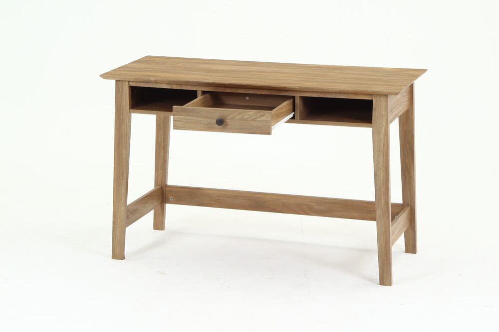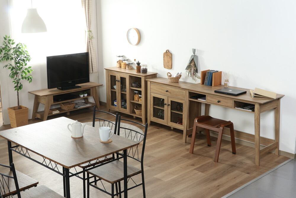 内寸幅31×奥行45.8cmの引き出しには、文房具などの小物を収納できます。スライドレールなので引き出しやすさも◎引き出しの両サイドには幅33×奥行38.5cmのオープン収納。サッと取り出したいものなどは、ここに収納すると便利。一般的なチェアとも合わせやすい高さ72cm。足元も広くスッキリと。表面の木目が美しく、可能な限りネジ穴が見えないよう工夫されています。