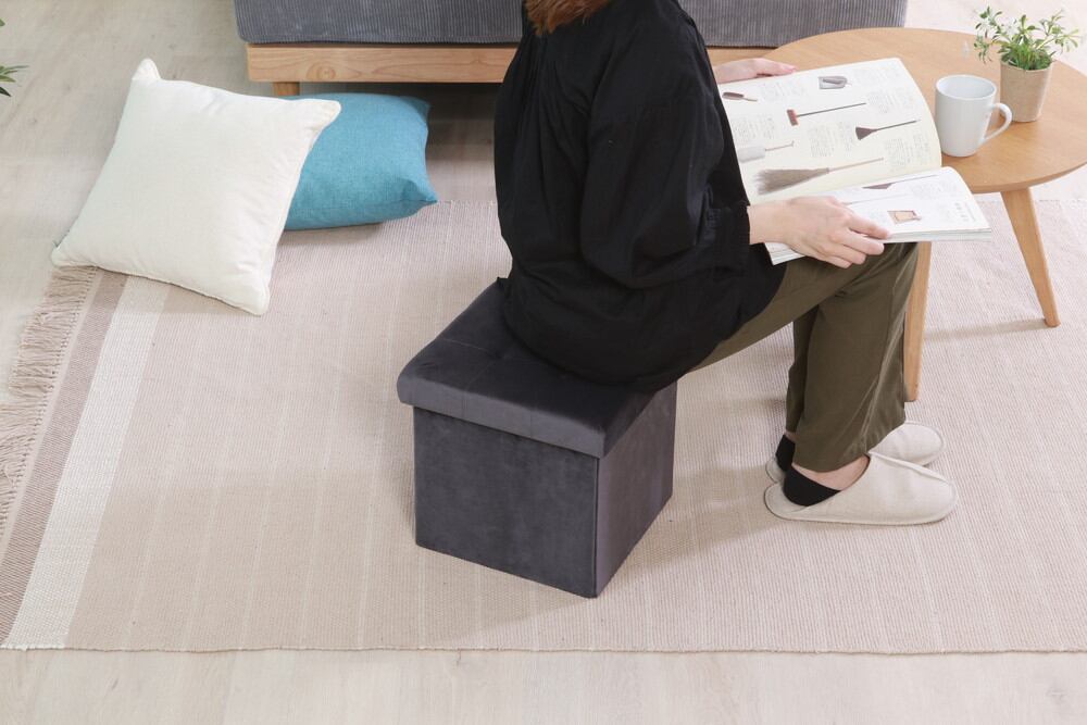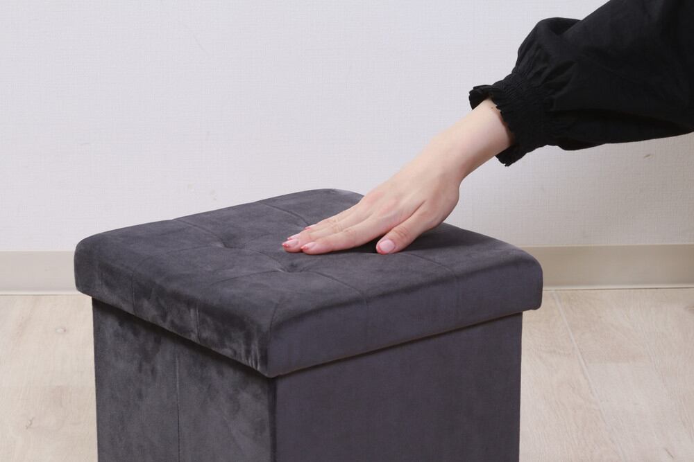 収納スツール 30cm ベロア調 シルバーグレー