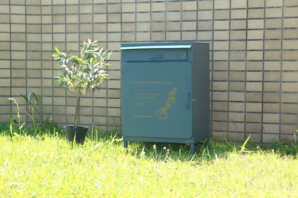 幅45.5×奥行33.5×高さ37.5cmの広々宅配スペース。底面はワイヤーがあり、荷物を水濡れから防ぎます。また、水抜き穴が開いているので安心です。サイドには直径10mmの大きめな通し穴が付いており、南京錠の種類を問わず取り付けできます。印鑑収納付きで、宅配業者からスムーズに受け取り可能です。設置場所によってぐらつきが出る場合でも、4本脚それぞれ高さ調整ができるので便利。