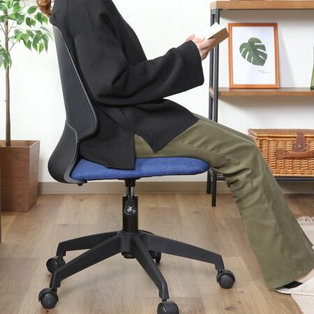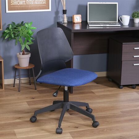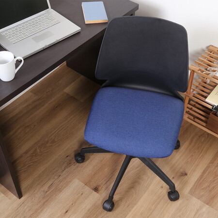 ポリエステル生地にウレタンフォームを使用した座面で快適な座り心地です。シェル型の背もたれが腰にしっかりフィットして疲れにくい作りになっています。ガス昇降式で、無段階で高さ調整が可能。座面の高さは45~55cmとお子様や女性でも使いやすい。ひじ掛けのないアームレスデザインなので、デスクにピタっと収まり見た目もすっきり。