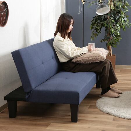 沈み込みすぎないほどよい硬さで、快適な座り心地です。耐荷重は180kg。シチュエーションに合わせて3段階で背もたれを調節できます。夏はべたつかず、冬はひんやりとしない、ファブリック素材を使用しています。ソファの下は20cmあるので、柄の長い掃除用品やロボット掃除機も通れます。埃が溜まりやすいソファの下を綺麗に保つことができます。