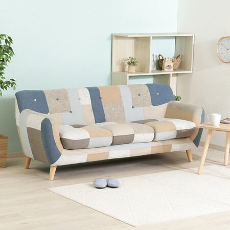 【大型配送】パッチワークソファ ラビスタ 3p BL