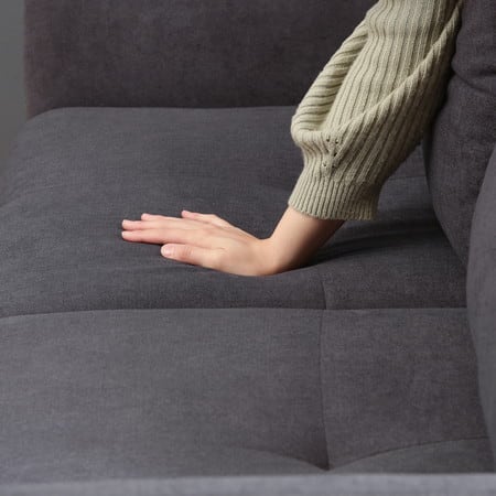 背もたれを奥にすると、最大幅138×奥行82cmのゆったりとした座面に!横になってリラックスできます。ソファ裏にはロータイプ用の補助脚付き。高い脚を取り外して、ローソファとしても使えます。沈み込みすぎないほどよい硬さで、快適な座り心地です。座面下は17cmあり、柄の長い掃除用品やロボット掃除機も通れます。埃が溜まりやすいソファの下を綺麗に保つことができます。