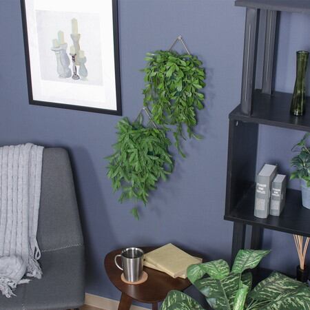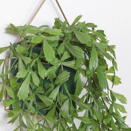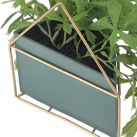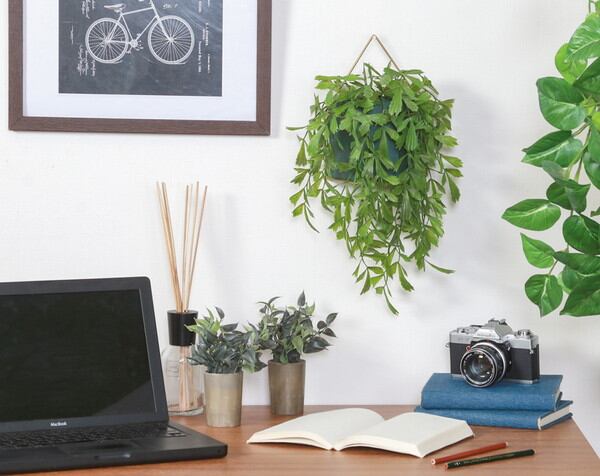 吊るしたり引っ掛けて使用するハンギングタイプは場所を取らず、お子様やペットのいたずらも防げます。ポットはグリーンと同色にし、ハンガー部分をゴールドにすることで上質感を演出し品のある仕上がりに。フェイクグリーンなので水やりなどの手入れを気にすることなく楽しめます。ときどき乾いたタオルでホコリをはたくだけでOK!リビング・寝室・玄関などどこでもお好きな場所でお使いいただけます。