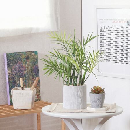 ちょうどいいサイズ感でテーブルの上はもちろん、お手洗いや洗面所などにも最適です。グリーンをやわらかく引き立てる丸みのあるホワイトポットはどんなインテリアとも相性抜群!フェイクグリーンなので水やりなどの手入れを気にすることなく楽しめます。ときどき乾いたタオルでホコリをはたくだけでOK!リビング・寝室・玄関などどこでもお好きな場所でお使いいただけます。