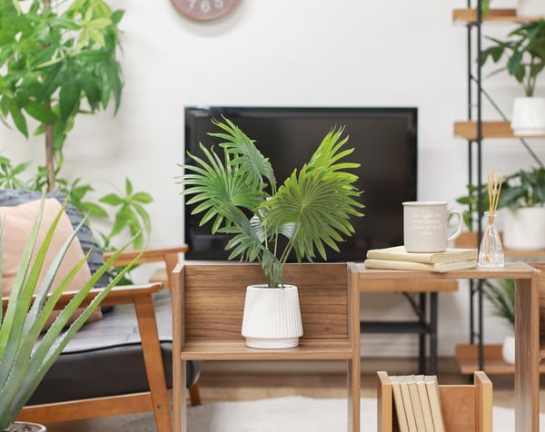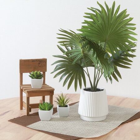 ちょうどいいサイズ感でテーブルの上はもちろん、お手洗いや洗面所などにも最適です。グリーンをやわらかく引き立てる丸みのあるホワイトポットはどんなインテリアとも相性抜群!フェイクグリーンなので水やりなどの手入れを気にすることなく楽しめます。ときどき乾いたタオルでホコリをはたくだけでOK!リビング・寝室・玄関などどこでもお好きな場所でお使いいただけます。
