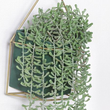 吊るしたり引っ掛けて使用するハンギングタイプは場所を取らず、お子様やペットのいたずらも防げます。ポットはグリーンと同色にし、ハンガー部分をゴールドにすることで上質感を演出し品のある仕上がりに。フェイクグリーンなので水やりなどの手入れを気にすることなく楽しめます。ときどき乾いたタオルでホコリをはたくだけでOK!リビング・寝室・玄関などどこでもお好きな場所でお使いいただけます。