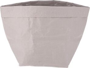 落ち着いたカラーでお部屋に合わせやすく、グリーンをより引き立ててくれます。くしゃっとしたクラフトペーパーならではの質感がインテリアに調和します。水をはじくラテックス素材の紙を使用しているので、土汚れなどがついてもササっと洗うことができます。幅広いマチ22cmでプランターの7号に対応しています。紙でできているので、使わないときは折りたたんで収納できます。衣類やスリッパなどの収納バスケットとしてもお使いいただけます。