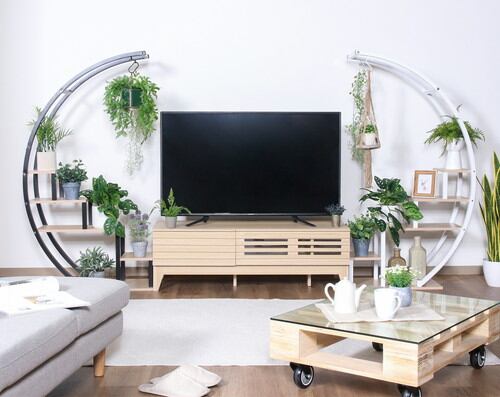 小型の観葉植物などをよりおしゃれに楽しむことができるディスプレイラックです。グリーンと相性のいいスチール×木目のデザインで、インテリアによく馴染みます。アーチの上部にフックを引っかけると、吊り下げ式のグリーンも楽しむことができます。天板には傷や汚れに強いと云われているメラミンシートを使用。汚れてもサッと拭くだけでお手入れ簡単です。グリーンだけでなく、写真立てやお気に入りの雑貨を飾るなど使い方は様々。裏表がないデザインなので、お部屋の間仕切りに使用することもできます。アーチ型のラックを組み合わせると雰囲気も変わり、より素敵なインテリアに早変わり!