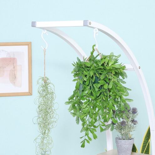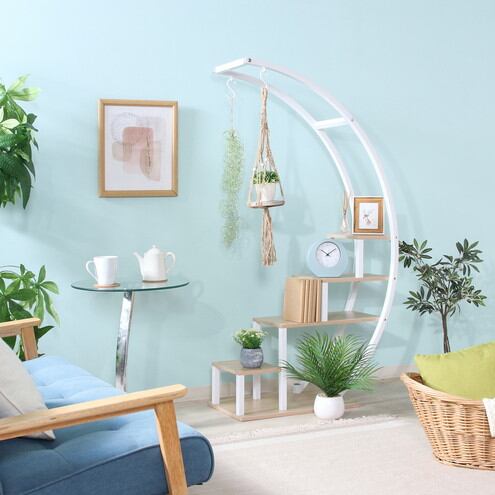 小型の観葉植物などをよりおしゃれに楽しむことができるディスプレイラックです。グリーンと相性のいいスチール×木目のデザインで、インテリアによく馴染みます。アーチの上部にフックを引っかけると、吊り下げ式のグリーンも楽しむことができます。天板には傷や汚れに強いと云われているメラミンシートを使用。汚れてもサッと拭くだけでお手入れ簡単です。グリーンだけでなく、写真立てやお気に入りの雑貨を飾るなど使い方は様々。裏表がないデザインなので、お部屋の間仕切りに使用することもできます。アーチ型のラックを組み合わせると雰囲気も変わり、より素敵なインテリアに早変わり!