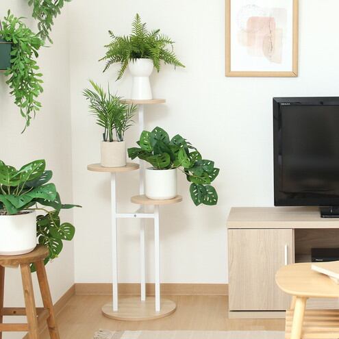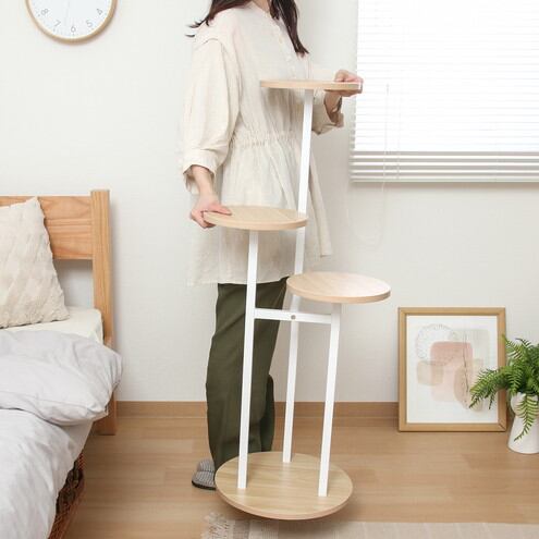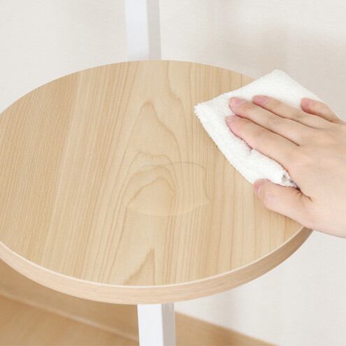 お花や小型の観葉植物をよりおしゃれに楽しむことができるディスプレイラックです。植物と相性のいいスチール×木目のデザインで、インテリアによく馴染みます。幅35×奥行35cmのスリムサイズなので、コーナーなどの狭いスペースも有効活用できます。天板は直径24cmと大きいので、小さな多肉植物を複数置いたり小物を追加したり、飾り方は自由自在。グリーンだけでなく、写真立てやお気に入りの雑貨を飾るなど使い方は様々。天板には傷や汚れに強いと云われているメラミンシートを使用。汚れてもサッと拭くだけでお手入れ簡単です。4.2kgと軽いため、お掃除の時も1人でサッと動かすことができます。